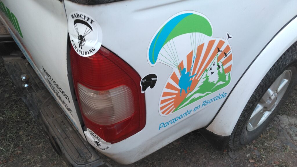 Orlando was our trip organizer and guide. The taillight on his truck was hanging by the wires, so I suggested we use this as an opportunity to sticker his truck. Paul taped the top and bottom as I did the side with one with my son’s website stickers.